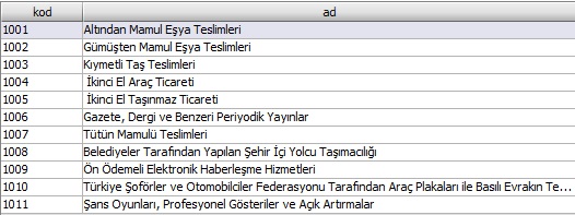 - “İşlem Türü” olarak 1001, 1002, 1003, 1004, 1005 seçildiğinde;